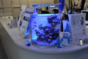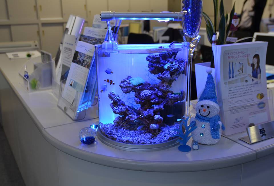 事務所の受付にウェルカムアクアリウムとしておしゃれにお客様をお出迎えするアイテムとして